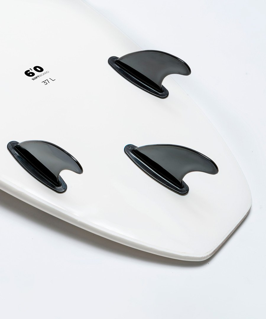 Want to start catching waves on your own? Well, the Standard models offer a wide range of Softboards that have one thing in common, they are easy and safe to surf. For both whitewater warriors and green wave gliders these boards will make every surf session fun! IXPE TOP HDPE BOTTOM EPS CONSTRUCTION SF5 THROUGH DECK FINS SETUP *Fins included with all softboards 6’0 x 20’’ x 2 1/2’’ – 37 ltrs Also included with product